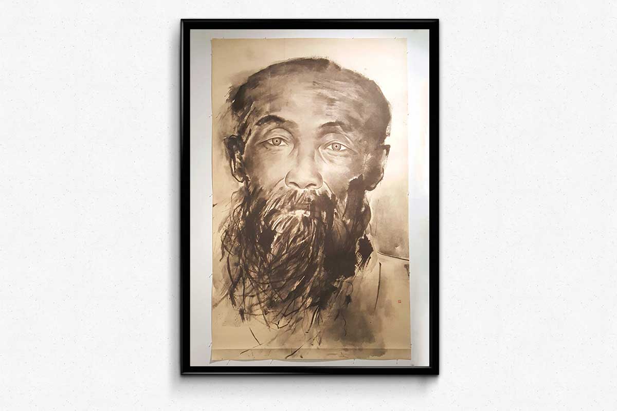 Born in rural South western Korea in 1957, Kim Ho-suk’s works of art offers an illuminating insight into a life of an artist that reflects upon reciprocal affinities, progressive intellectual movements and role models that range from religious and political figures to farmers and vendors that captures the essence of homogeneous unitary pride of the populace in its heritage. His practice is an amalgam of the rich legacy of the land and its tumultuous modern history and reflects the role of the nation in flagging the importance of the past. It also portrays the role of the nation in institution building and the importance of people participation in matters of national pride. Ho-suk’s each series reflects his in-depth study, survey and understanding of his land and its people. His works are also a documentation of a generation between the 1950s to 1970s in Korea that believed in emphasizing on the cultural heritage as one of the most suited methods that would help the nation rise as a coherent powerful unit from the ravages heaped on it through relentless domination and war and they strongly felt a sense of responsibility to pass down a bright and conflict-free Korea to the future generations. Ho-Suk’s works respond to the greater public awareness about the importance to preserve Korean legacy in order to have their own identity and standing in the world.